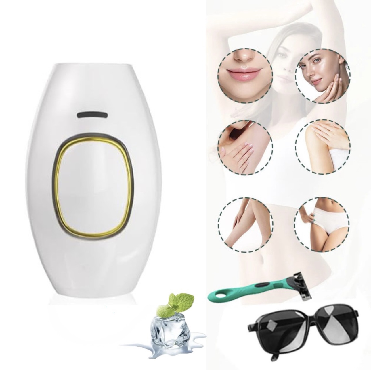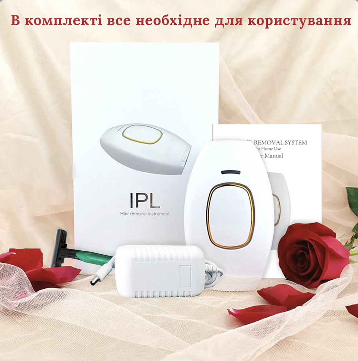 - Комплектація: лазерний епілятор, інструкція, захисні окуляри, бритва